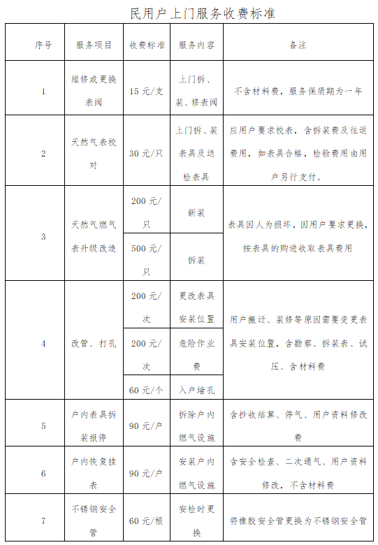 根据公司经营需要,公司各项业务收费标准已向县价格主管部门报备(具体标准如下),并对外公示。请大家遵照执行,并做好解释工作。