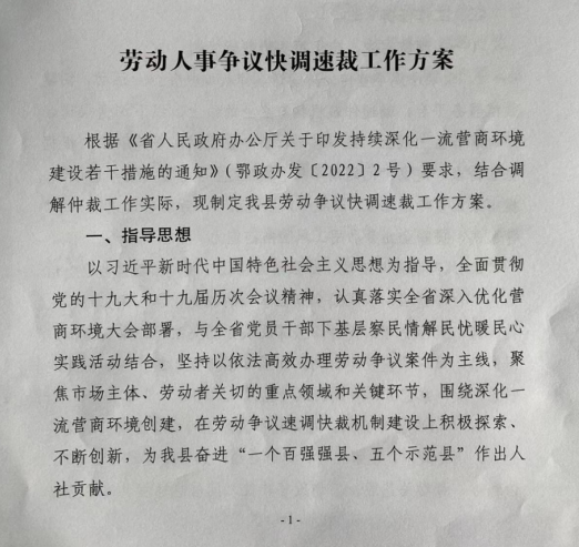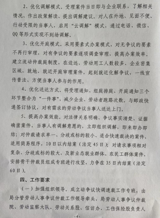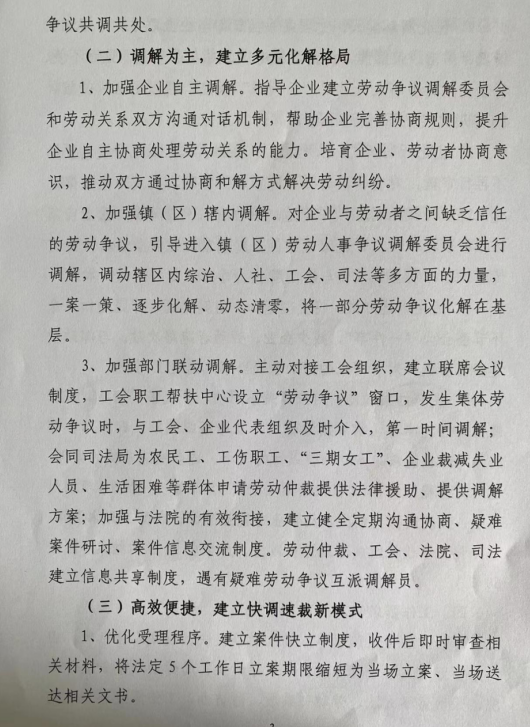 劳动人事争议快调速裁工作方案
