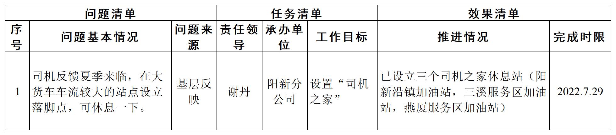 阳新石油分公司领导班子开展“下基层、察民情、解民忧、暖民心”实践活动“三张清单”