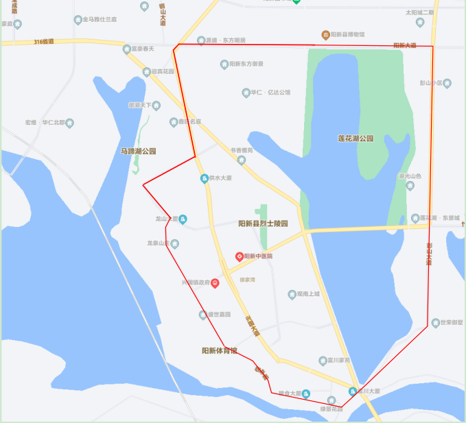 阳新县中心城区(经济开发区、城东管理区、兴国镇)。东界:彭山大道以西;南界:世荣御墅至绿景花园一线以北;西界:儒学路至龙港路、李家湾至兴国大道、东方明居一线以东;北界:阳新大道以南。(详见附件)