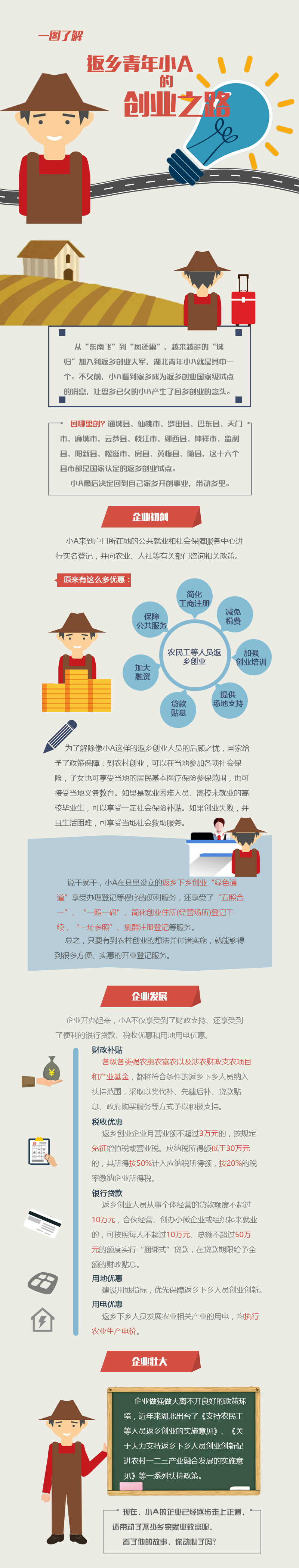 “新农人”返乡下乡渐成热潮。那么,“新农人”创业会经历哪些步骤?优惠政策的密集出台又会给他们带来哪些实惠呢?一图带你了解返乡青年小A的创业之路!