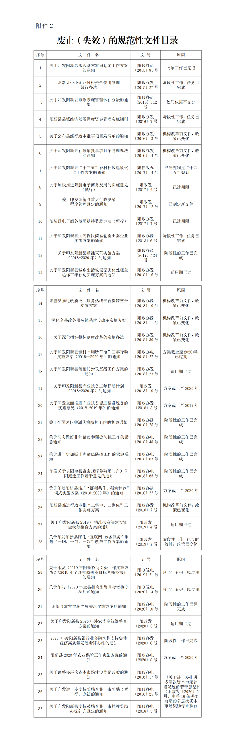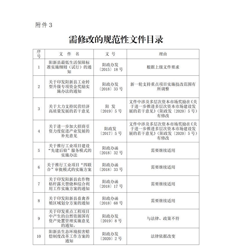 为适应全面深化改革,转变政府职能要求,按照国务院、省、市关于进一步做好“放管服”改革、优化营商环境涉及规范性文件清理工作部署,县人民政府对政府规范性文件进行了全面清理,经县政府常务会议审议通过,现将清理结果予以公布。