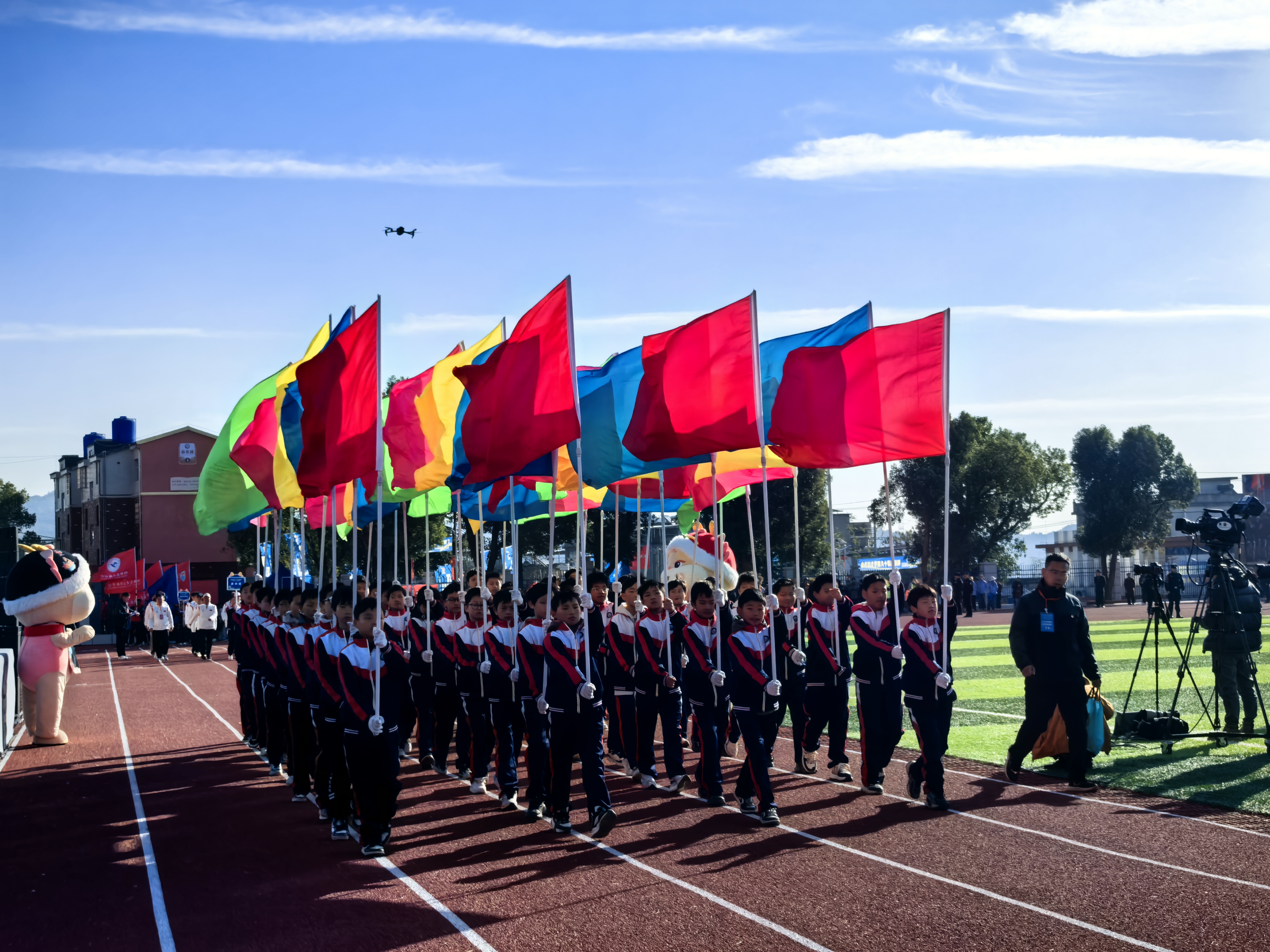 11月18日上午,阳新县第十八届学生运动会在浮屠初级中学开幕。本届运动会以“运动强体魄,阳光向未来”为主题,全县各校学生代表队将在此展开激烈角逐。