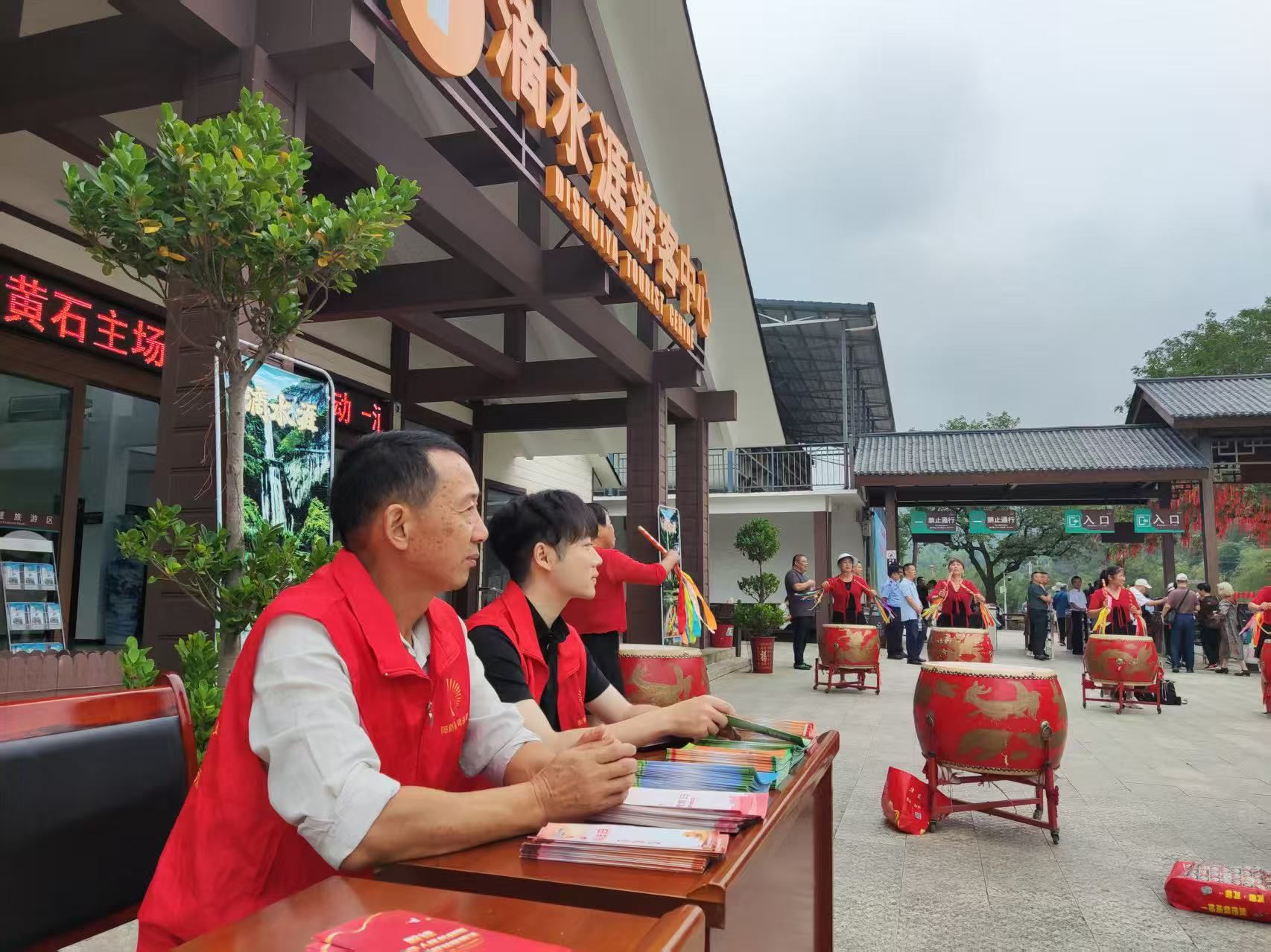 9月23日上午,2025年中国农民丰收节黄石市主场“庆丰收”活动在阳新县排市镇滴水涯旅游区举行。县司法局排市司法所紧抓“丰收节”人流密集的有利时机,在景区入口处设立普法宣传点,将法律知识与节日喜悦一同送到农民朋友身边,为热烈的丰收庆典增添了一抹独特的法治色彩。