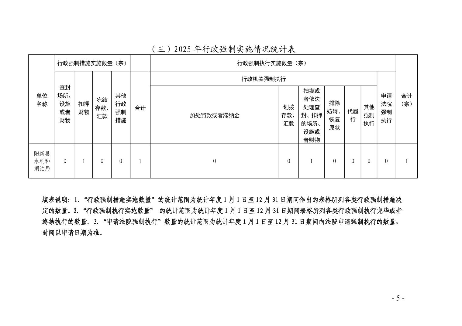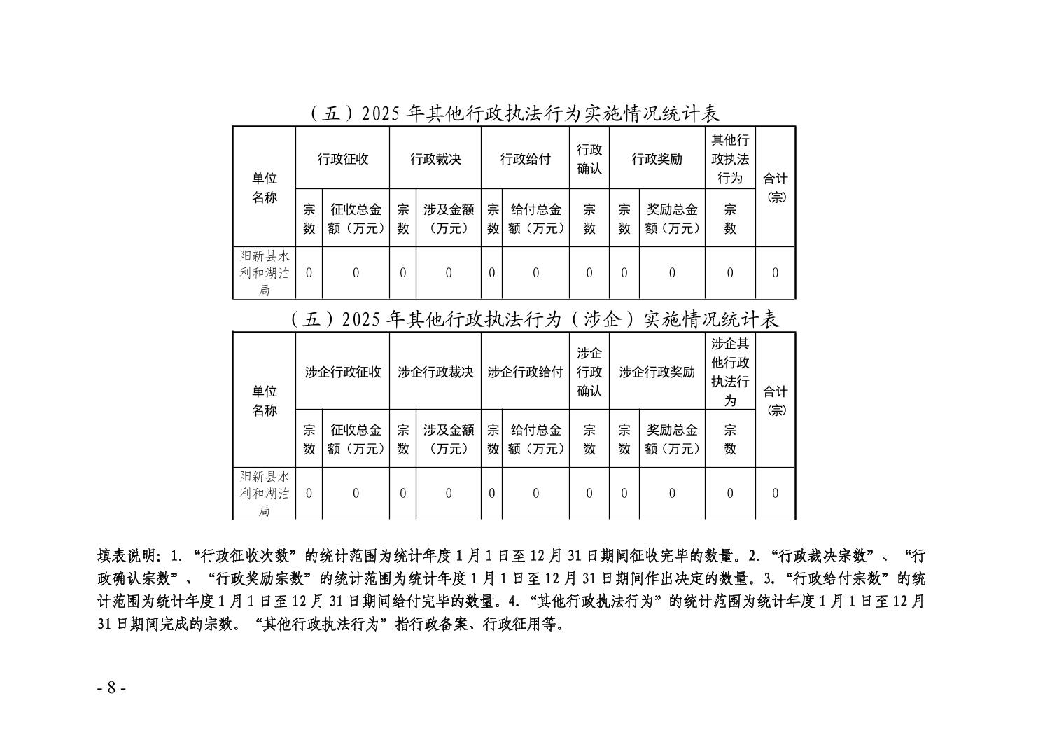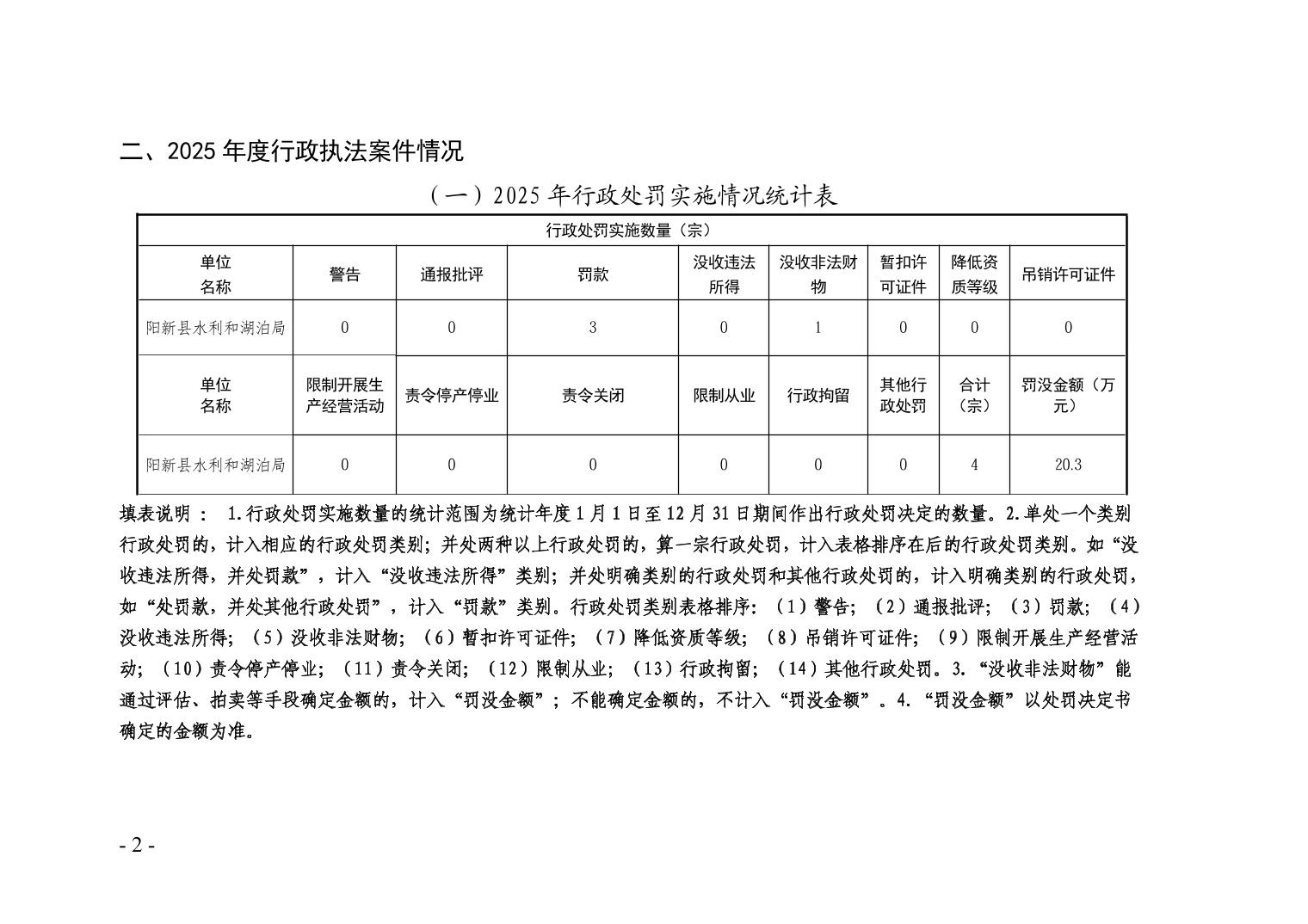 阳新县水利和湖泊局2025年行政执法统计年报
