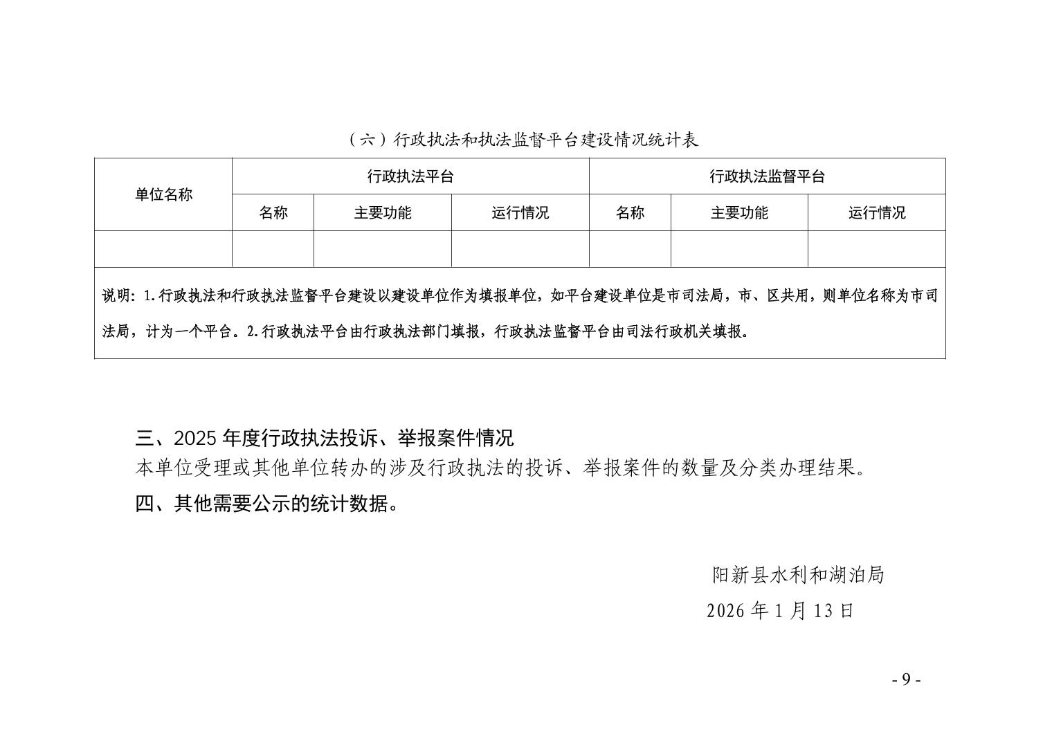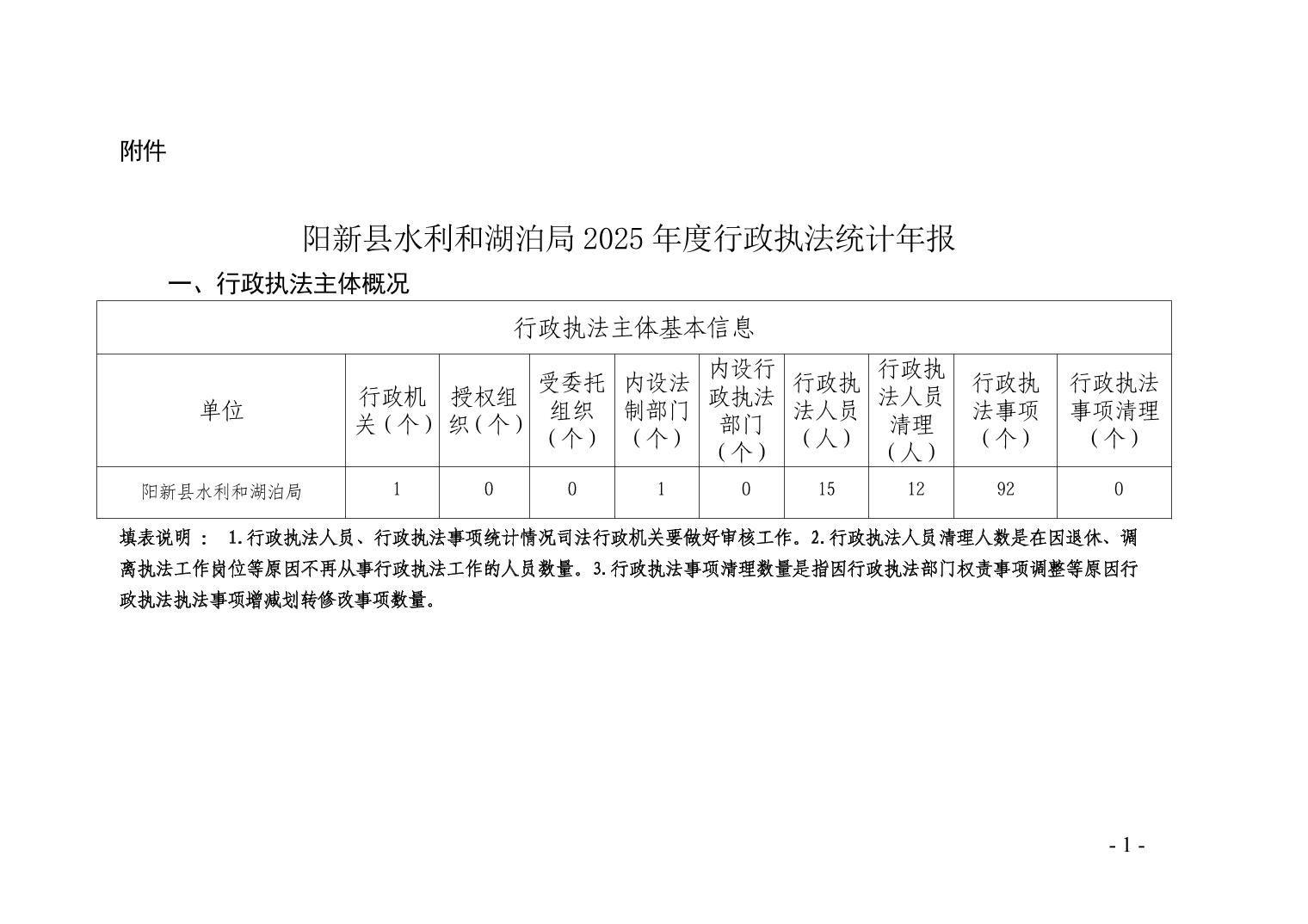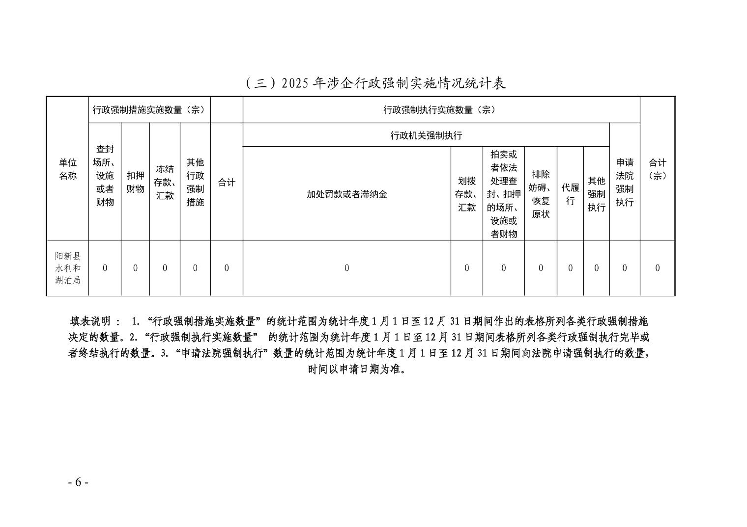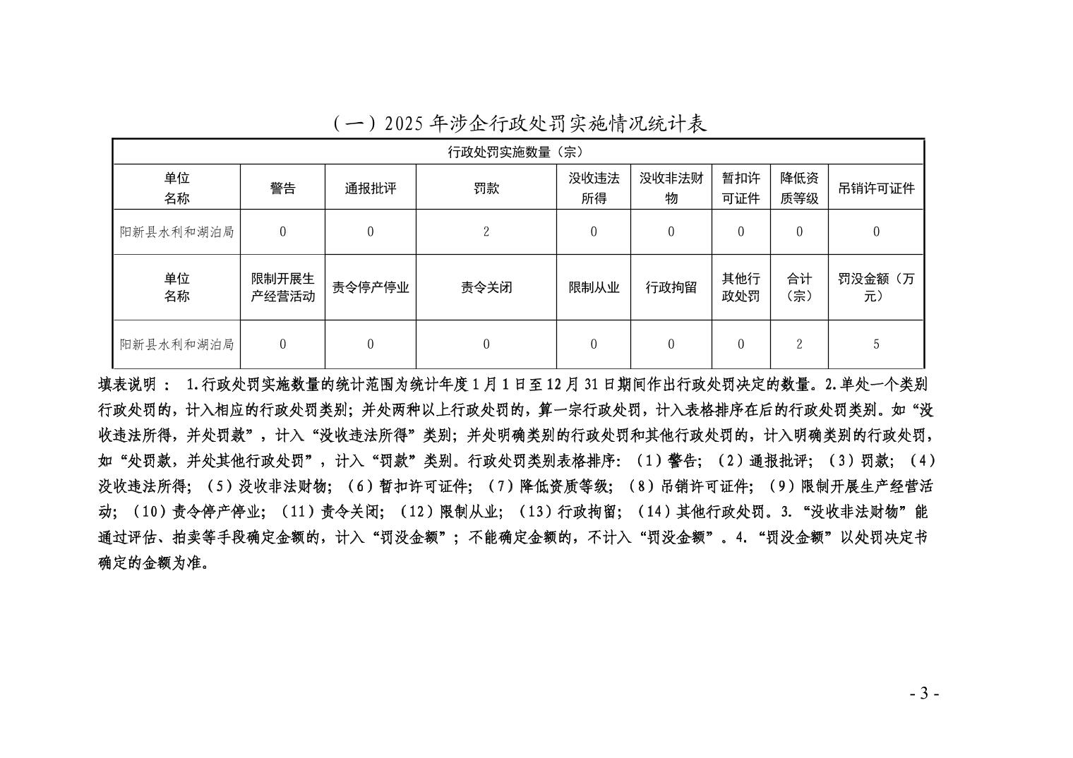 阳新县水利和湖泊局2025年行政执法统计年报