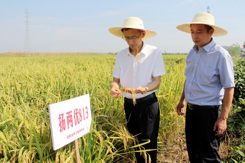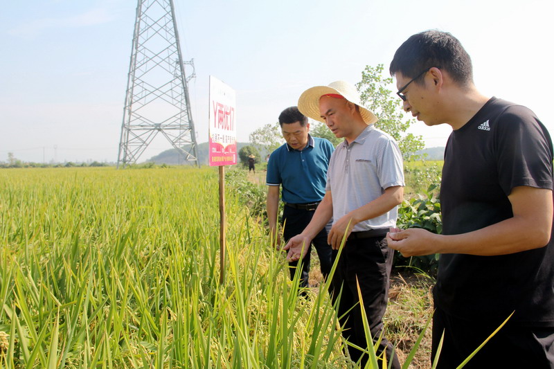 今年,展示的中稻优质新品种有Y两优17、吨两优900、荃两优鄂晶丝苗、荃两优851、Y两优2818、荃优607、荃优169、徽两优8966、扬两优813、荃两优鄂丰丝苗、两优005、嘉优中科13-1、华两优2817、两优二三丝苗等14个,面积共50亩。