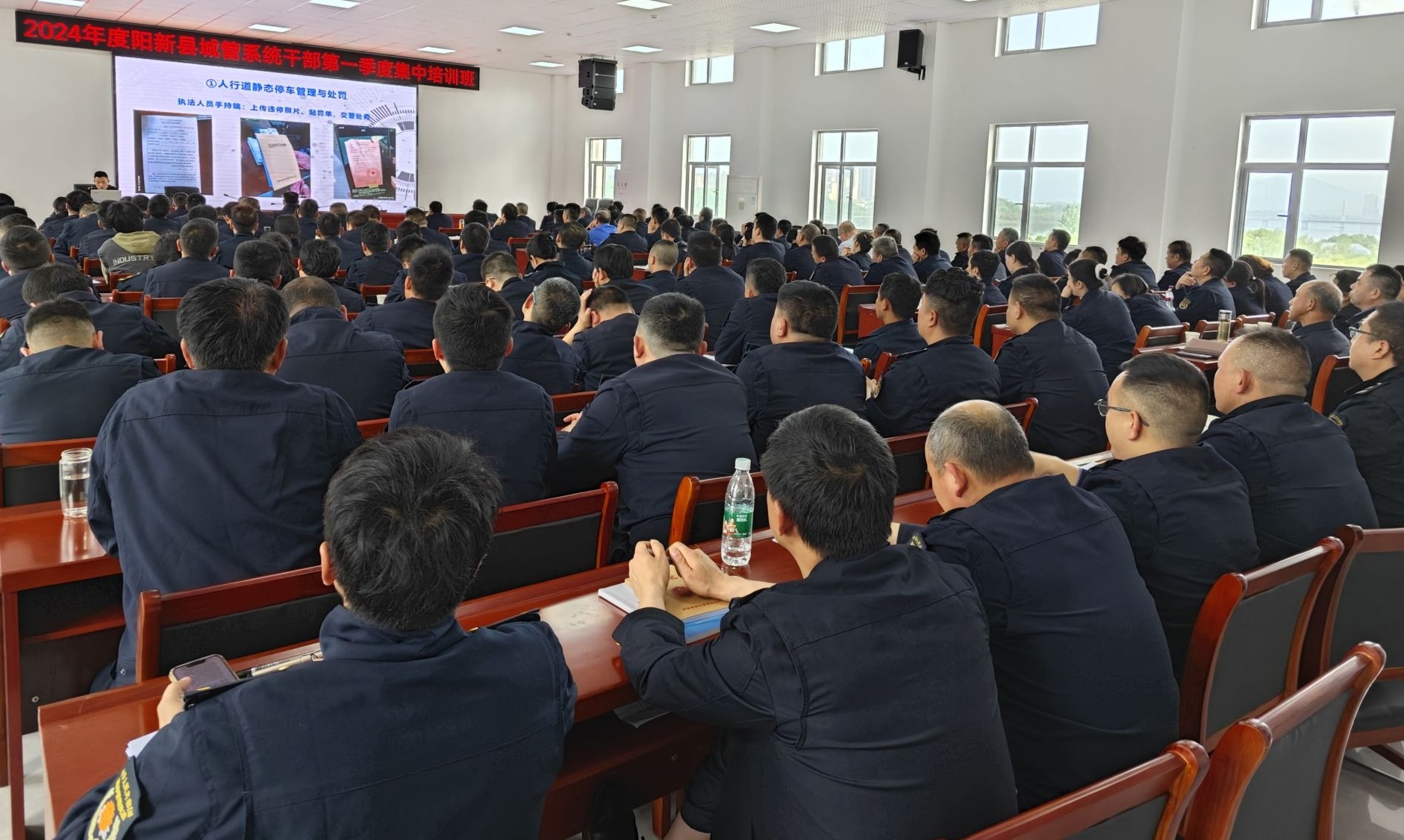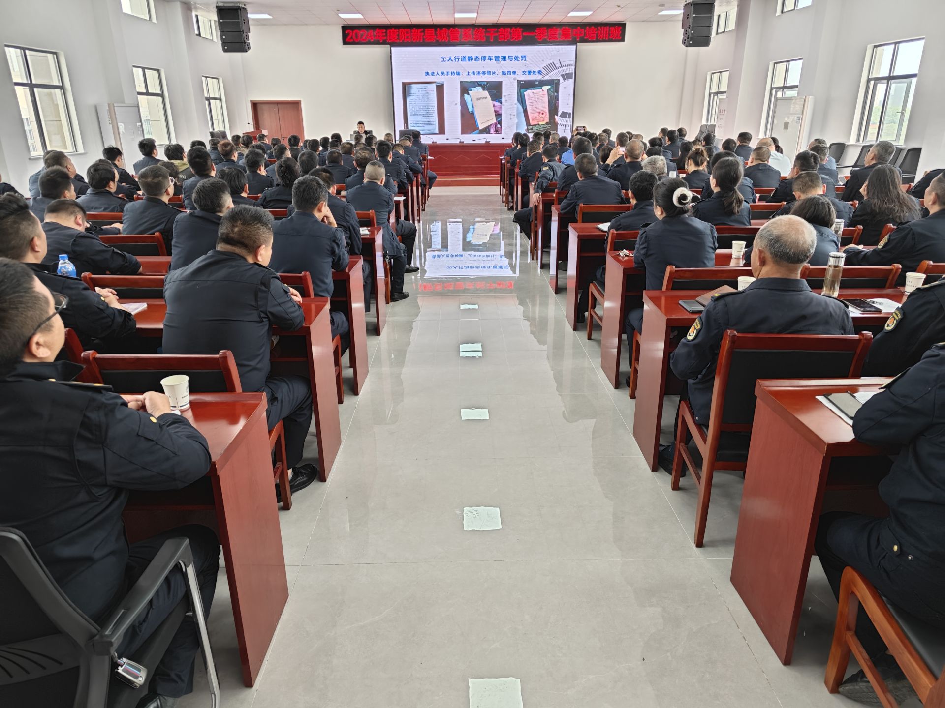4月12日,县城管执法局开展城管系统第一季度集中培训,采取集体授课与理论测试相结合的方式进行。144名干部职工参加培训。