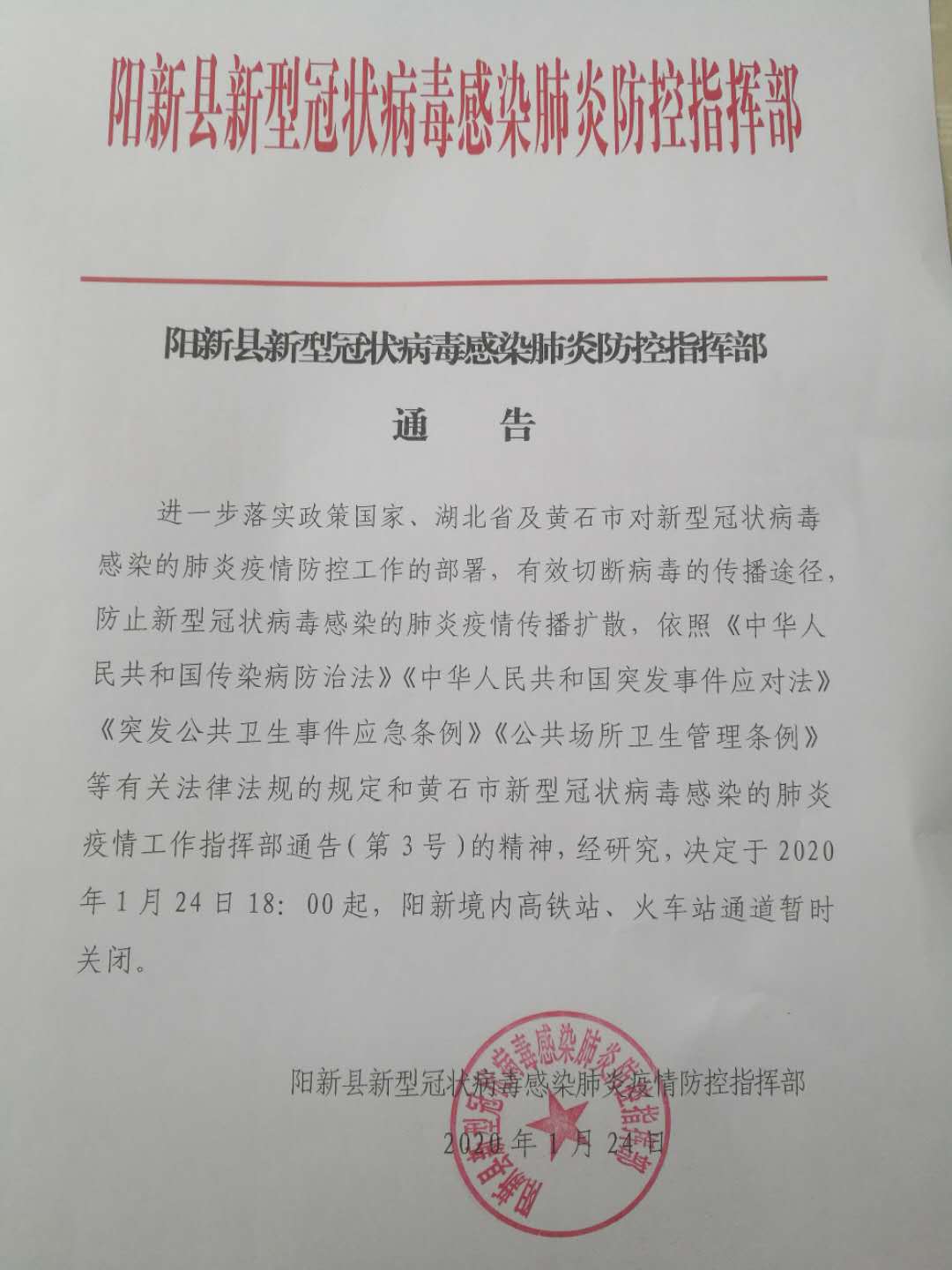 阳新境内高铁站、火车站通道暂时关闭