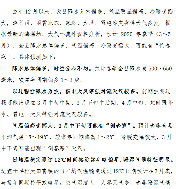 重大气象信息专报 | 春季我县降水偏多、气温偏高、冷暖变幅大