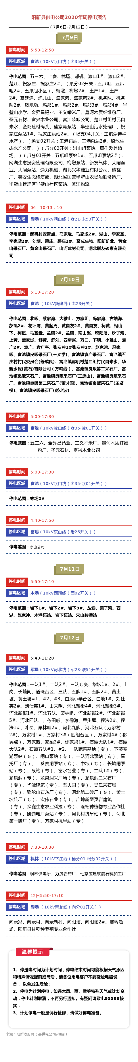 阳新县供电公司2020年周停电预告(7月6日-7月12日)