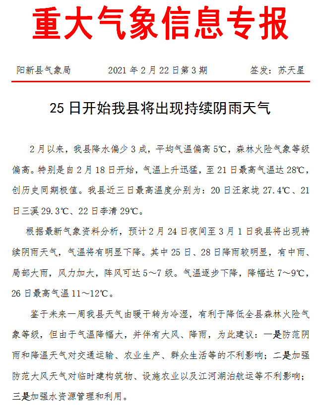 重大气象信息专报 |25日开始我县将出现持续阴雨天气