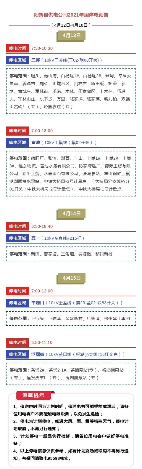 阳新县供电公司2021年周停电预告(4月12日-4月18日)