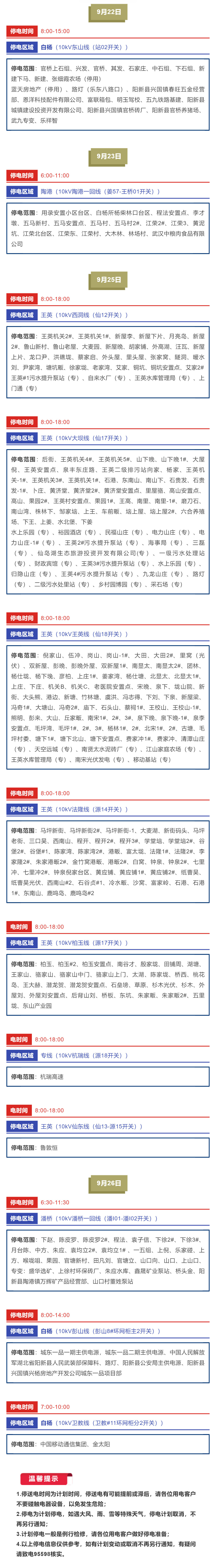 阳新县供电公司2021年周停电预告(9月20日-9月26日)