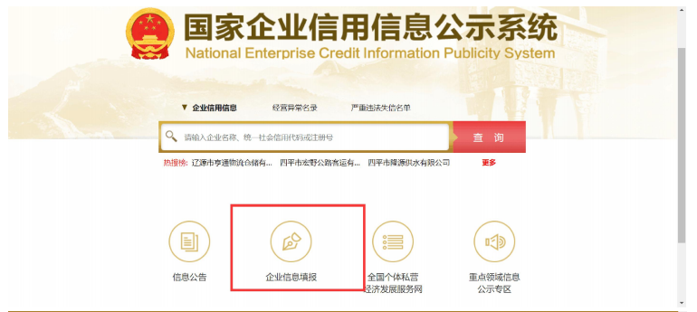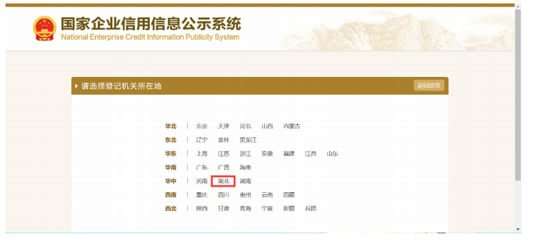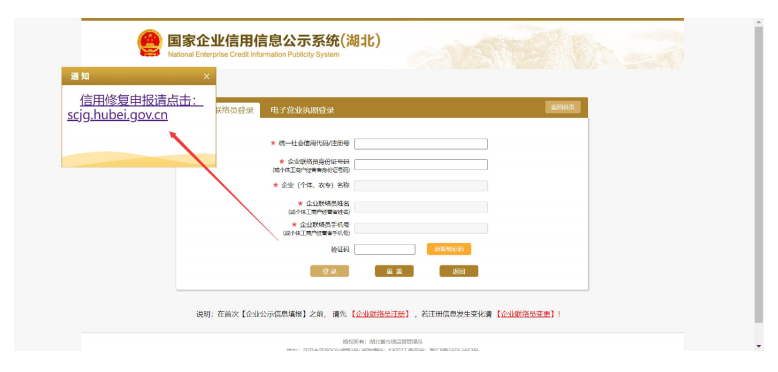 进入国家公示系统,点击【企业信息填报】,跳转后点击下方【湖北】,进入页面再点击飘窗,进入填报登录页。