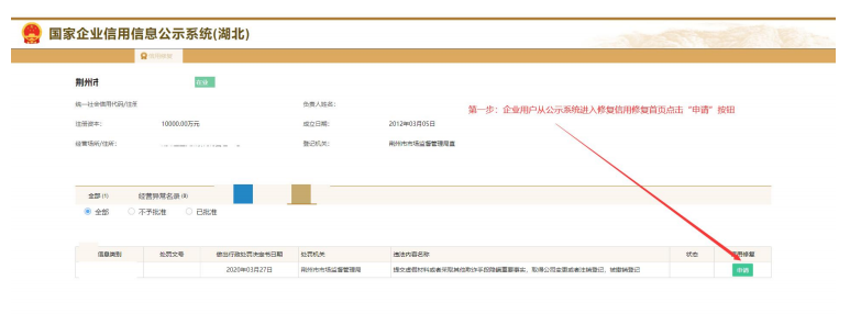 (二)线上通过国家企业信用信息公示系统(湖北)申请信用修复操作指南(暂只支持修复经营异常(状态)名录))