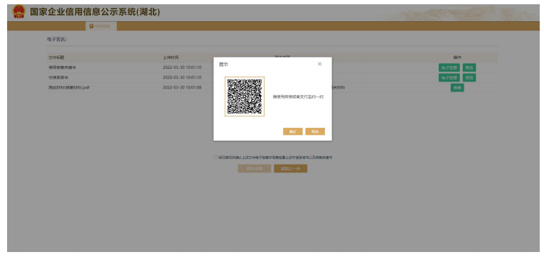 ⑤点击“电子签章”按钮,弹出一个二维码,使用微信或支付宝小程序“电子营业执照扫码签章”签章完成后,点击“关闭按钮”即可。
