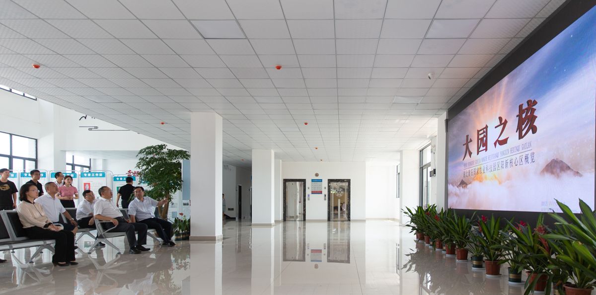 吴锦一行观看国家农业科技示范园区阳新核心区宣传片