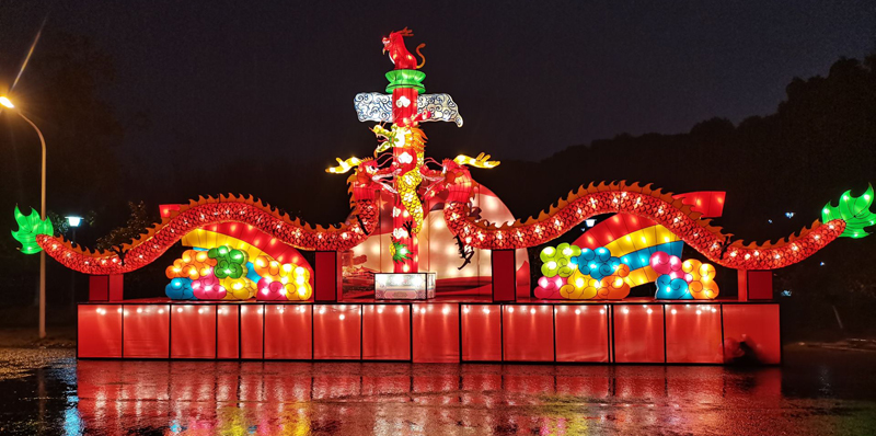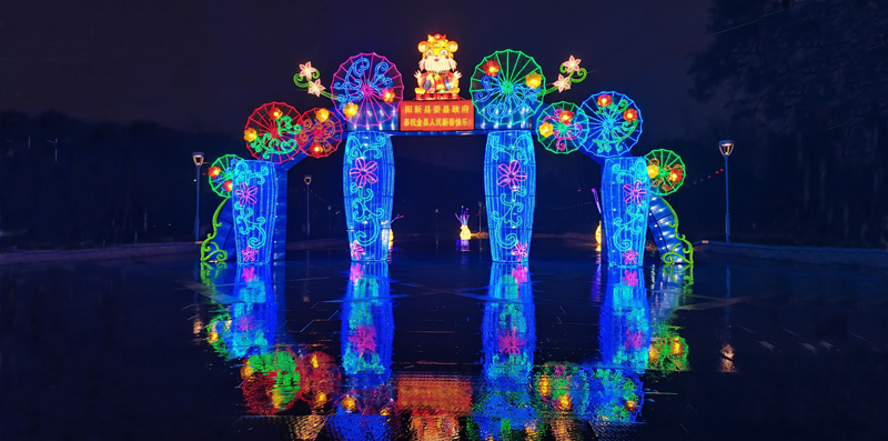 本次灯展共展出16组大型艺术灯和氛围灯组。花灯样式繁多,造型美观,新颖别致,有活灵活现的“十二生肖” “猛虎上山” “财神金榜题名”,也有寓意吉祥的“中国梦” “花开富贵”等。各式花灯璀璨绽放,给莲花湖公园披上了节日的盛装,把冬日夜晚打扮得绚丽多彩。(范深傲 石欢)