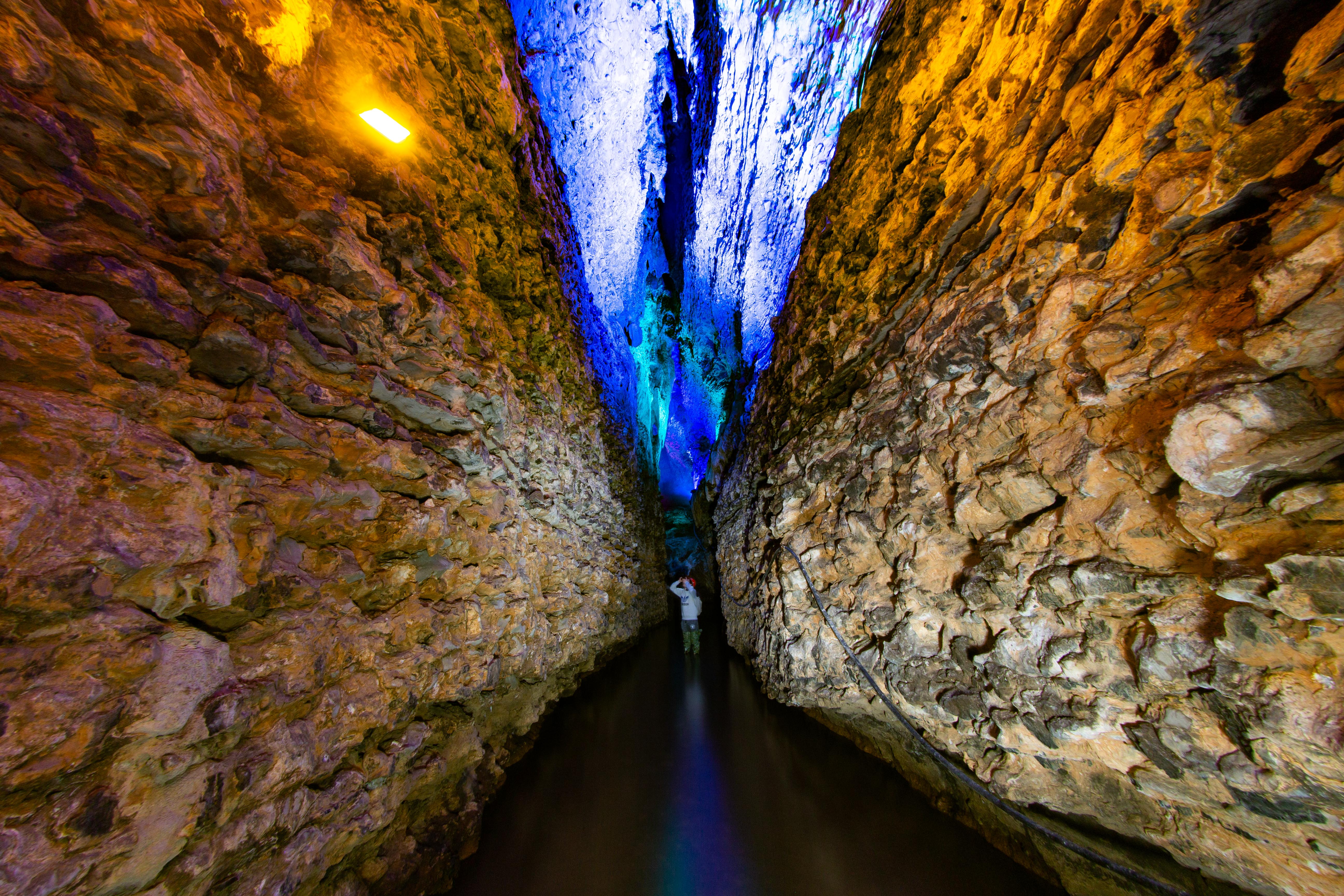 枫林地心大峡谷景区有四大特点:一是峡谷内钟乳石密集,洞壁岩石丰富,是一个活的地质博物馆;二是峡谷内全程涉水,体验新奇;三是可近距离接触钟乳石,让亿万年不再神秘;四是峡谷是由数百万年的水流冲刷而成,像江南美女,小家碧玉。