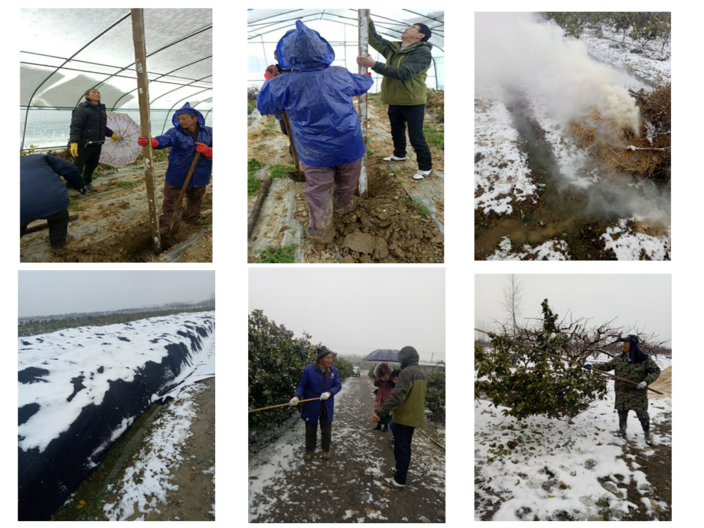督办组成员、县特产局农艺师柯金贤每到一处,都会强调果茶种植户,要作好抗大灾的思想准备,要在停雪时及时扫除树体积雪,组织好稻草、谷壳熏烟防冻材料,密切关注天气预报,一但停雪放晴的当晚下半夜,柑橘园统一设置熏烟点,夜间零点后统一点火熏烟,要求大家不要有侥幸麻痹思想,做好防冻防灾措施,把损失降到最低。