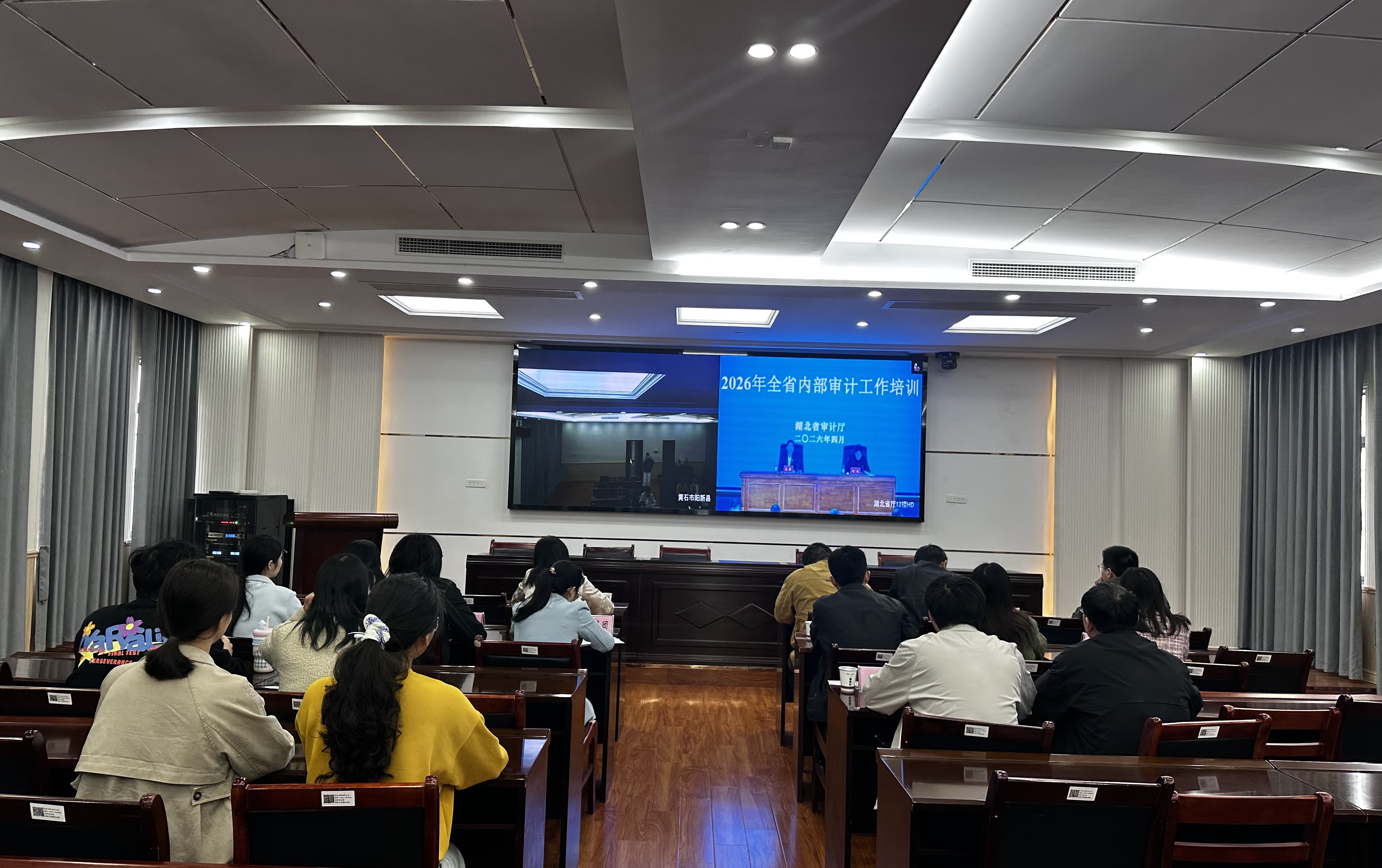 近日,2026年度湖北省内部审计工作专题培训顺利开展。阳新县审计局设立视频分会场开展集中学习,县直各有关单位分管负责人、内部审计工作负责同志及业务骨干参加培训。本次培训紧扣全国、全省审计工作会议精神贯彻落实工作,传达中央审计委员会、审计署最新工作安排部署,另有4家单位围绕实践经验作交流发言。