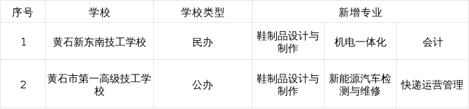 根据《关于做好2024年全省技工院校新设专业备案管理工作的通知》精神,经学校申报、专家组评估论证,按相关工作程序,黄石新东南技工学校会计、机电一体化、鞋制品设计与制作等3个新增专业符合设置条件,黄石市第一高级技工学校鞋制品设计与制作、新能源汽车检测与维修、快递运营管理等3个新增专业符合设置条件。现予以公示,公示期为4月8日至4月14日,具体名单详见附件。如有异议,请在公示期内反映。