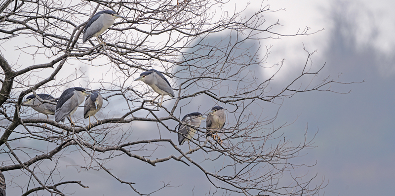 图为一群夜鹭在湖边大树上栖息。(严建)