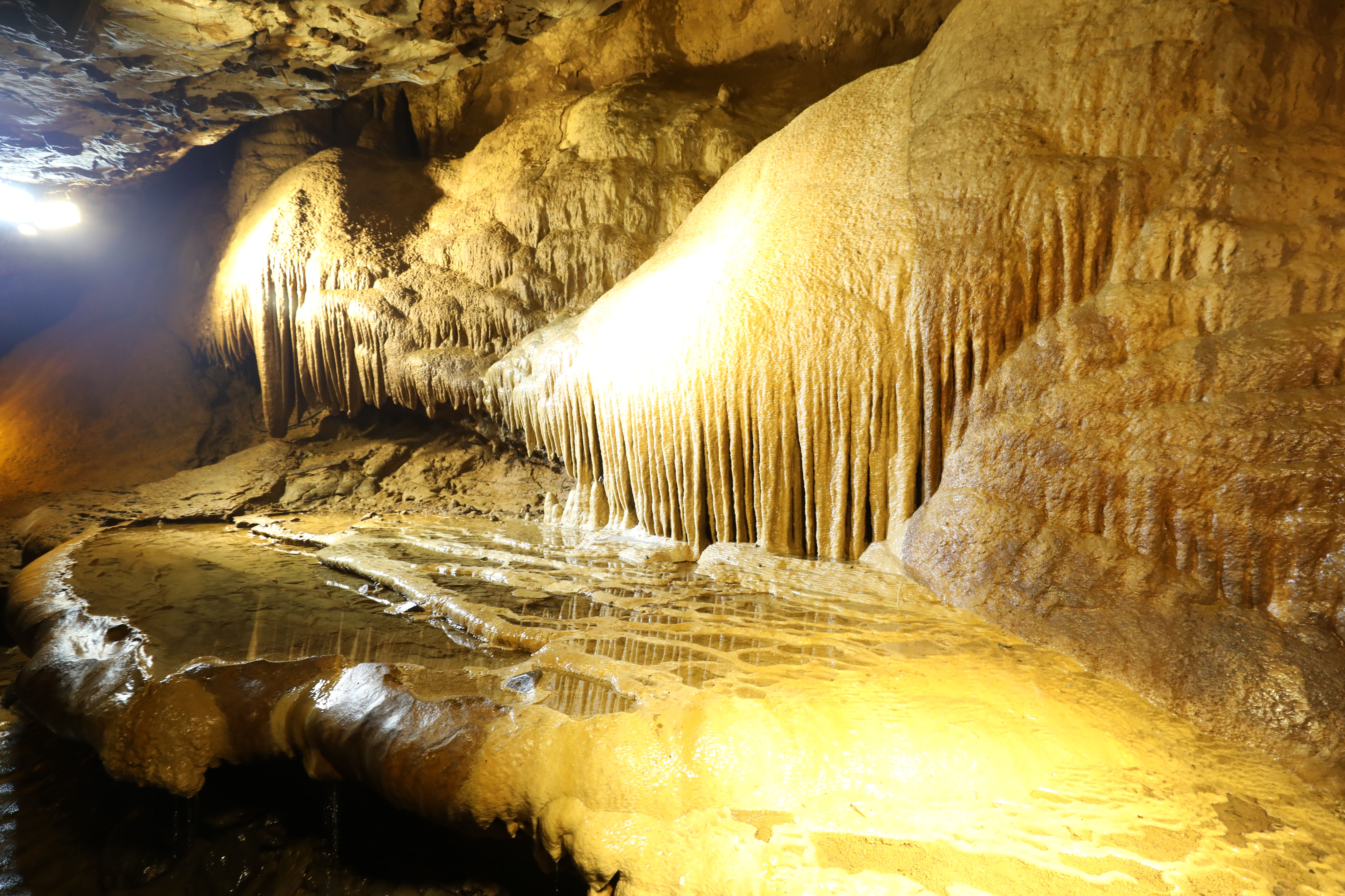 枫林地心大峡谷景区有四大特点:一是峡谷内钟乳石密集,洞壁岩石丰富,是一个活的地质博物馆;二是峡谷内全程涉水,体验新奇;三是可近距离接触钟乳石,让亿万年不再神秘;四是峡谷是由数百万年的水流冲刷而成,像江南美女,小家碧玉。