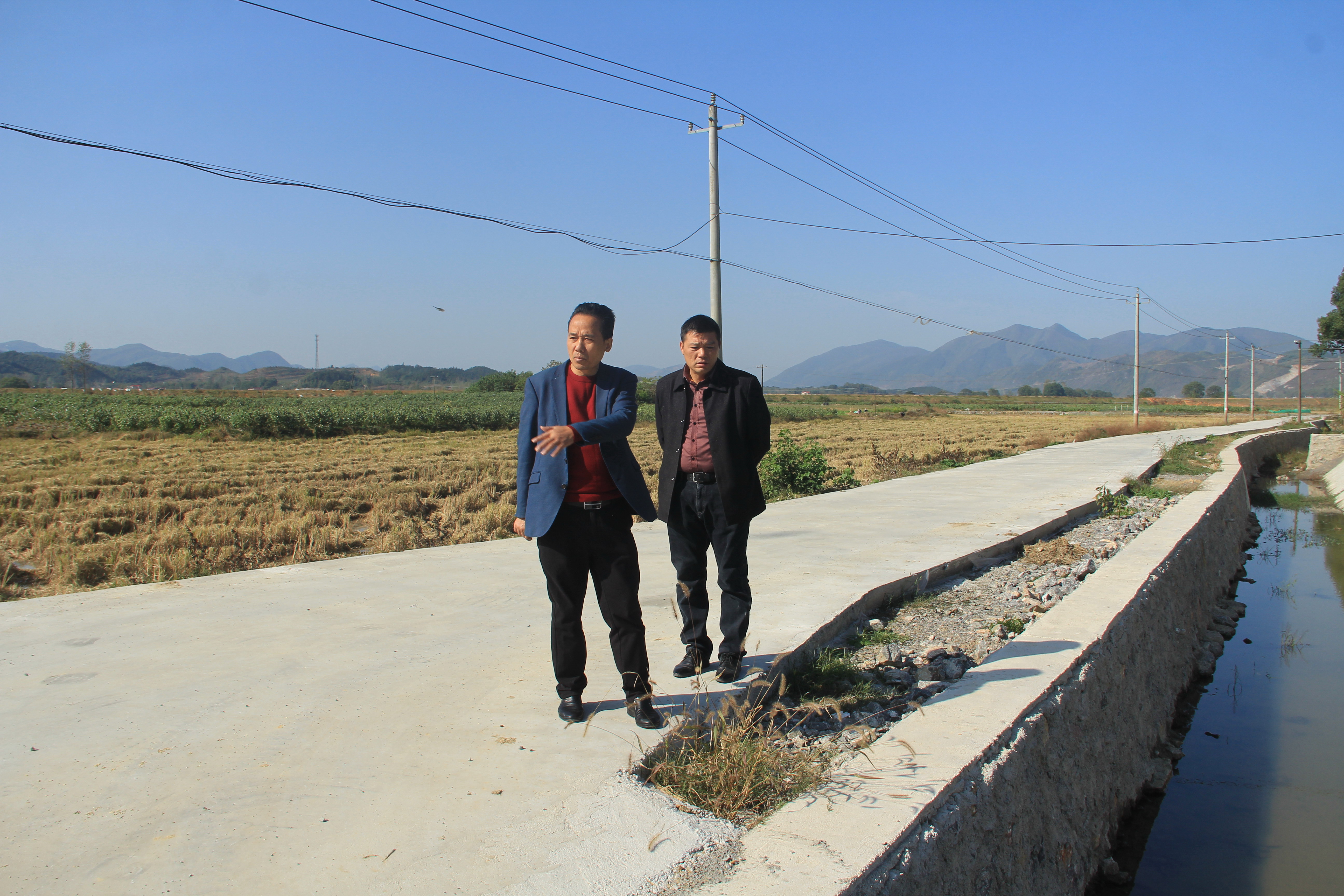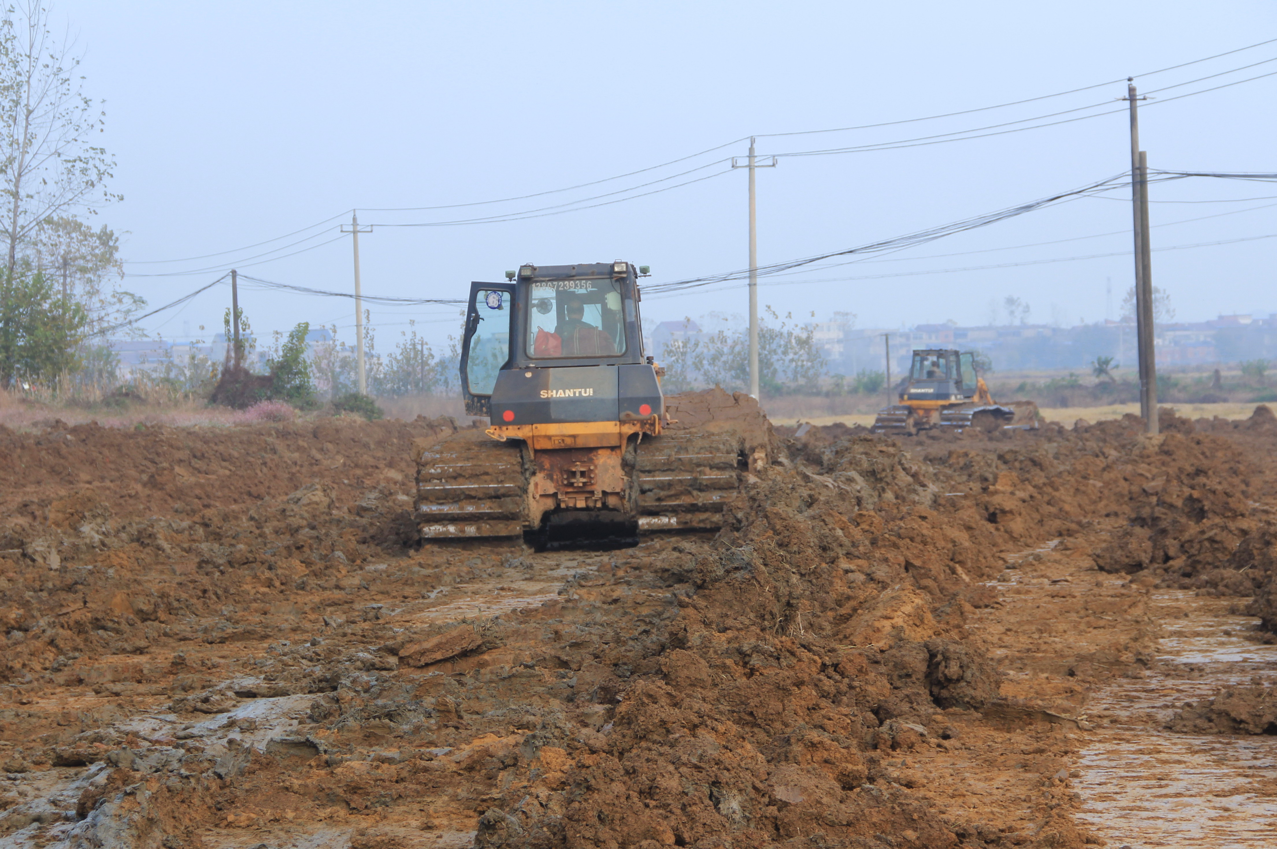 25日,阳新县排市镇河北村标段的高标准农田建设扫尾工作正在紧张进行,项目区现场机器轰鸣,往返穿梭……