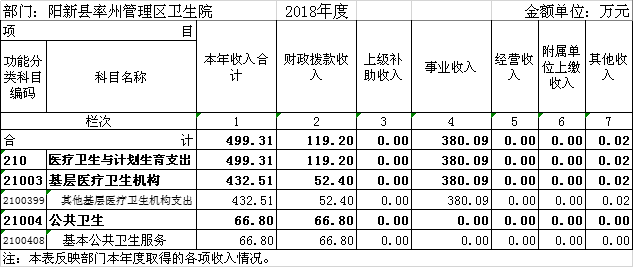 阳新县率州管理区卫生院2018收入支出决算总表(01表)