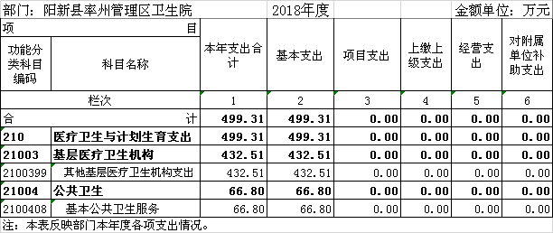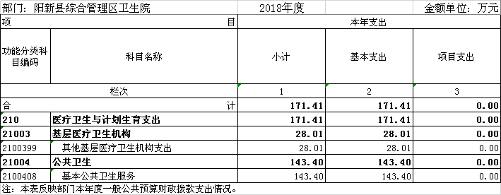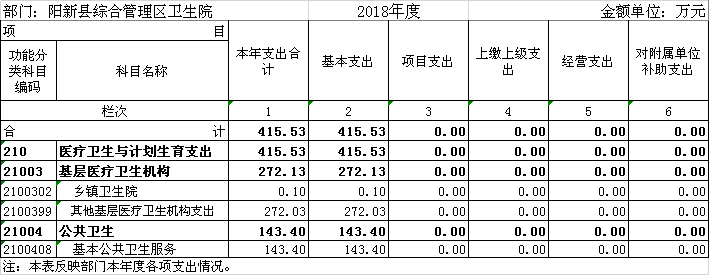 阳新县综合管理区卫生院2018支出决算表(03表)