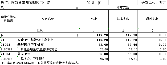阳新县率州管理区卫生院2018财政拨款收入支出决算总表(04表)