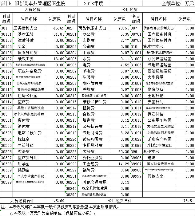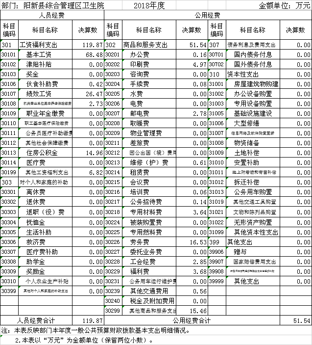 阳新县综合管理区卫生院2018财政拨款收入支出决算总表(04表)