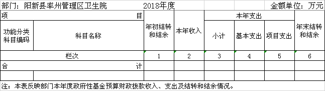 阳新县率州管理区卫生院2018政府性基金预算财政拨款收入支出决算表(08表)