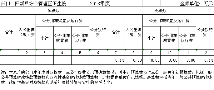 阳新县综合管理区卫生院2018财政拨款“三公”经费支出决算表(07表)