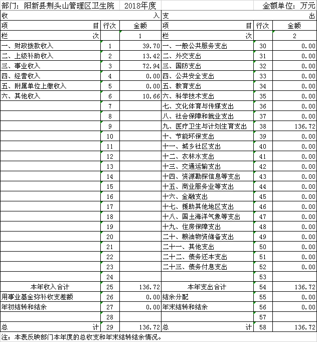 阳新县荆头山管理区卫生院2018收入支出决算总表(01表)