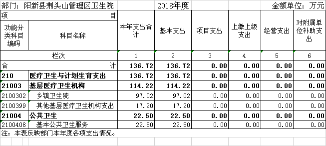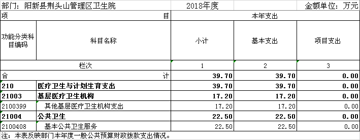 阳新县荆头山管理区卫生院2018支出决算表(03表)