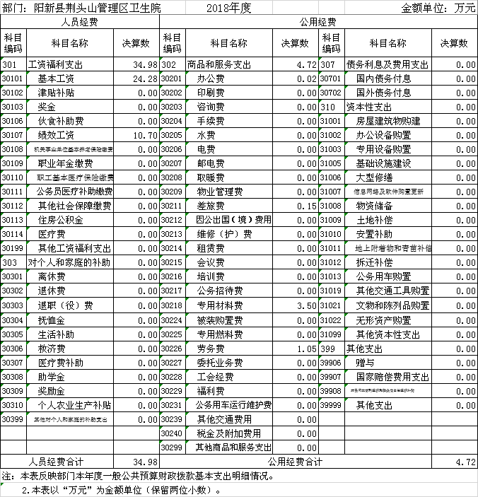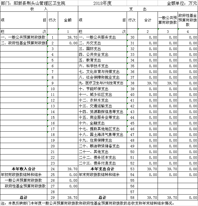 阳新县荆头山管理区卫生院2018财政拨款收入支出决算总表(04表)