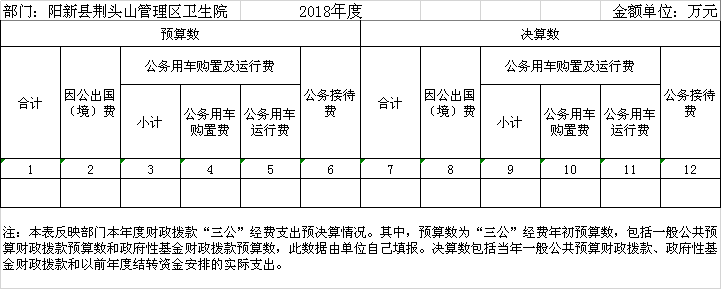 阳新县荆头山管理区卫生院2018财政拨款“三公”经费支出决算表(07表)