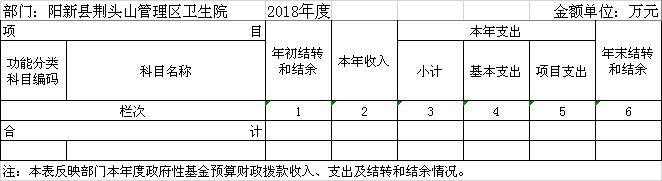阳新县荆头山管理区卫生院2018政府性基金预算财政拨款收入支出决算表(08表)