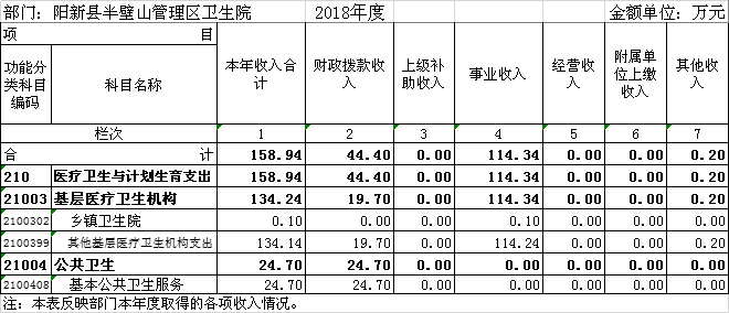 阳新县半壁山管理区卫生院2018年收入支出决算总表(01表)
