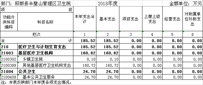 阳新县半壁山管理区卫生院2018支出决算表(03表)