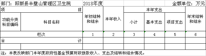 阳新县半壁山管理区卫生院2018政府性基金预算财政拨款收入支出决算表(08表)